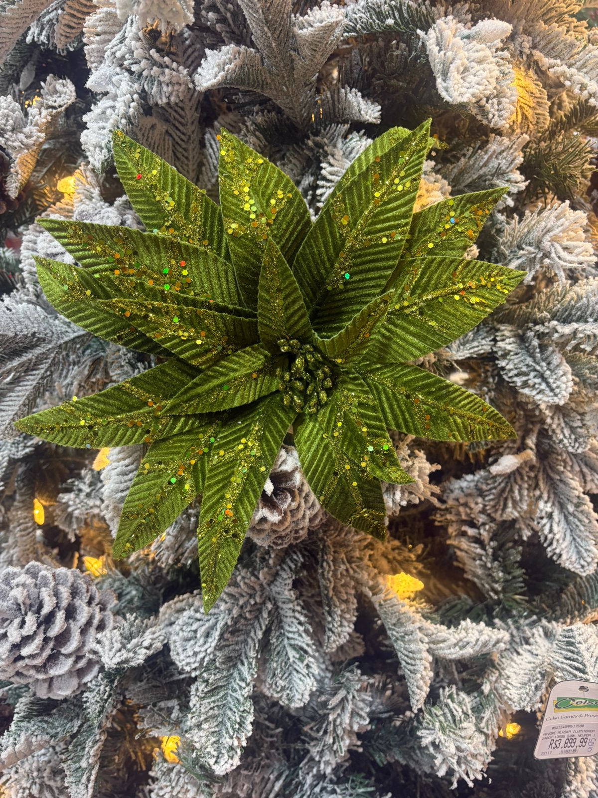 Flor decorativa de Natal na cor verde, com 40 cm de altura, perfeita para compor arranjos sofisticados e deixar sua decoração ainda mais charmosa. Suas pétalas possuem acabamento delicado e realista, trazendo um toque natural e elegante para árvores de Natal, guirlandas, arranjos de mesa ou enfeites especiais. Um detalhe versátil que harmoniza facilmente com outras cores natalinas, realçando o brilho e a beleza das festas de fim de ano.